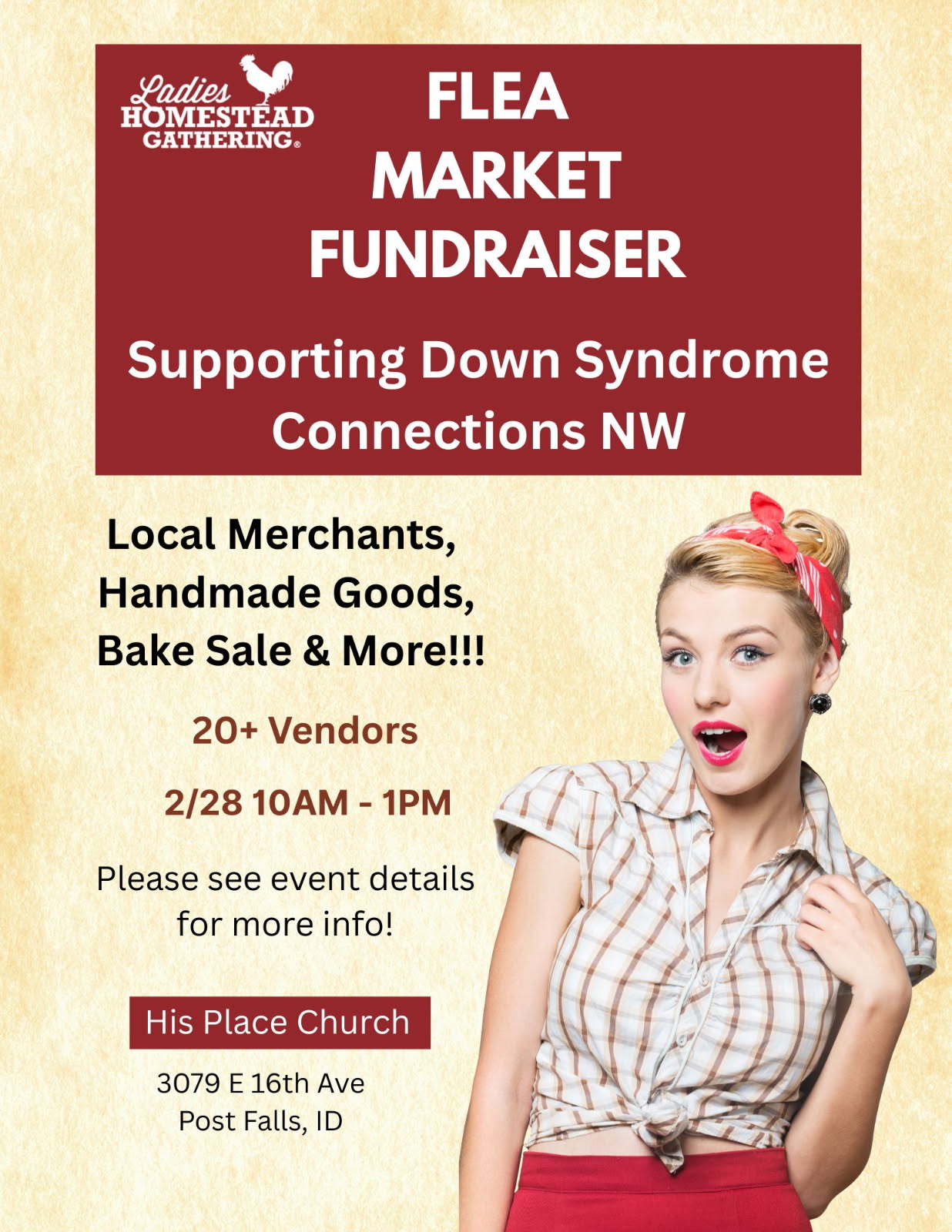 Join us for the Ladies Homestead Gathering Flea Market Fundraiser supporting Down Syndrome Connections NW! ๐